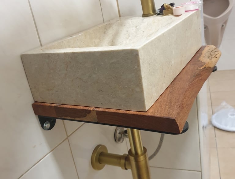 Im Gästebad neue Armaturen, Becken und Siphons installiert nach Kundenwunsch. (s. Abb. rechts)